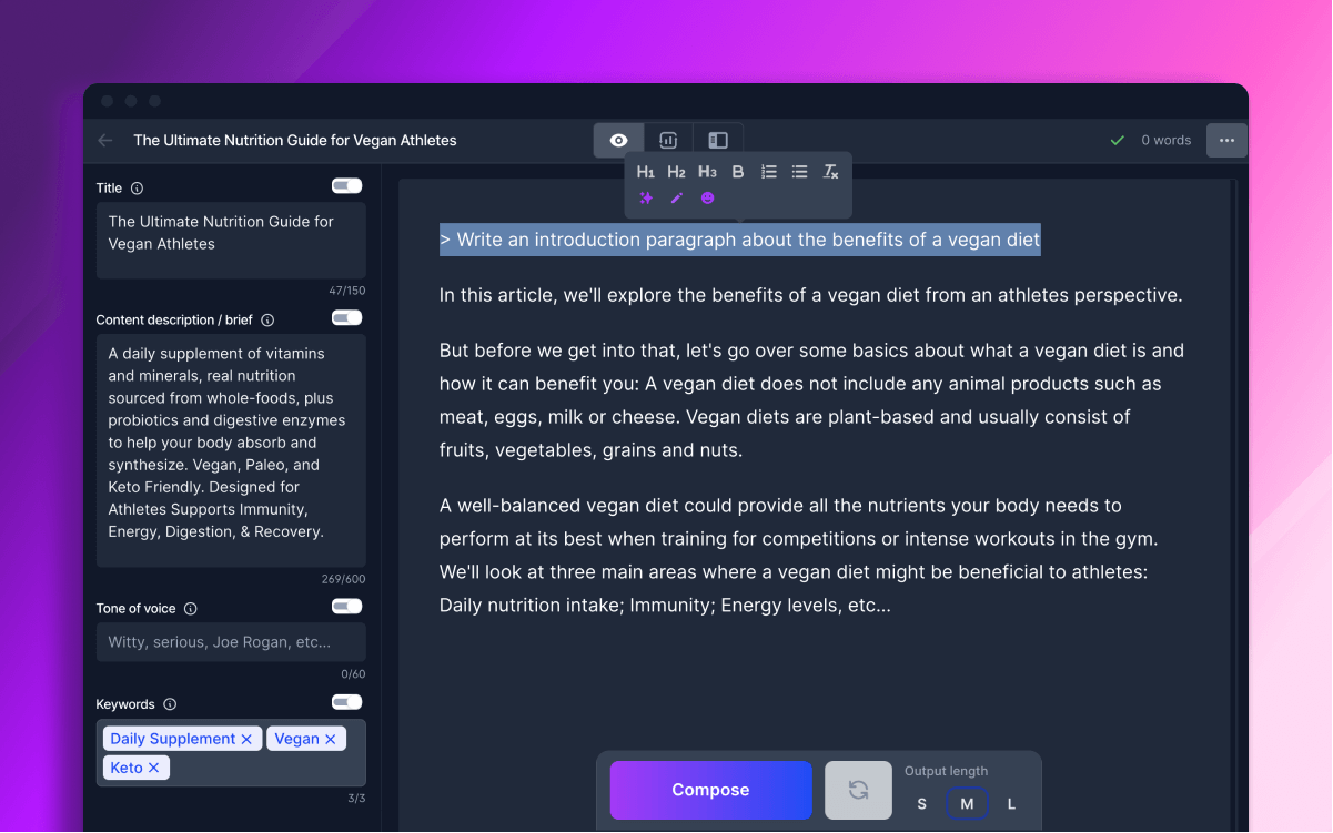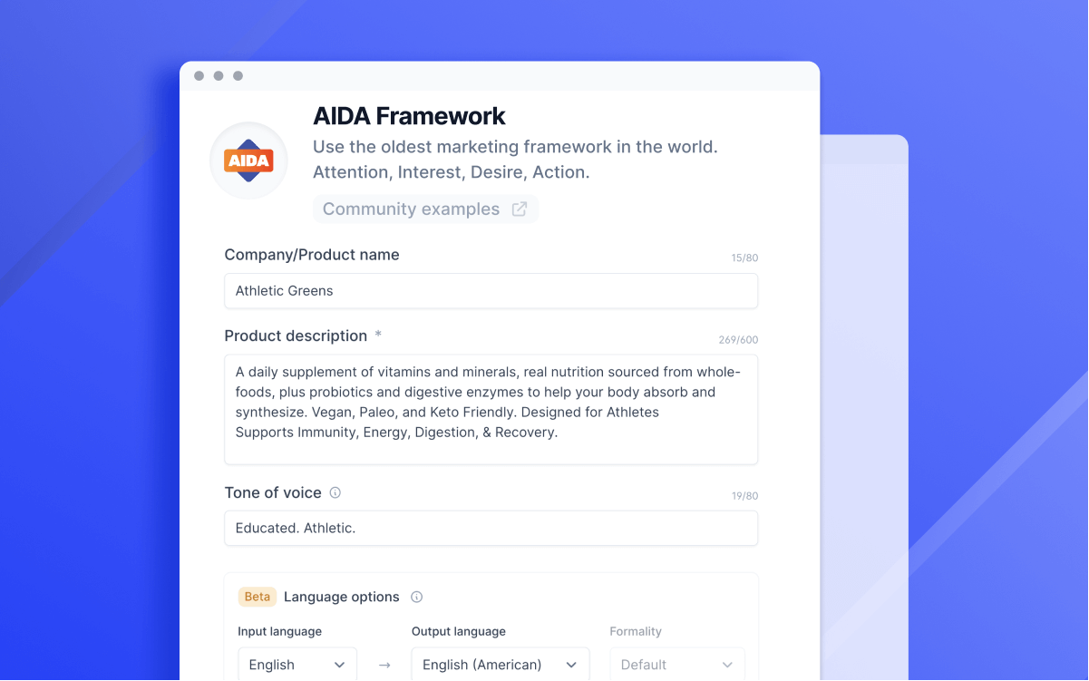 Stuck staring at a blank page? Relax and let Jarvis write creative copy for you.